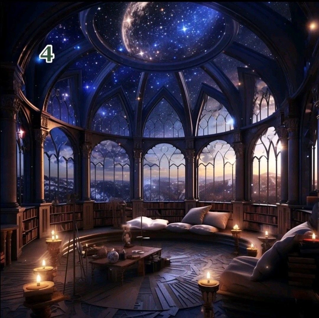 Просторное помещение, которое с большой натяжкой можно назвать аудиторией. Вместо привычных столов около книжных стеллажей расположены пуфики. Преподавателю же отведено мягкое кресло. Маленький стол посреди аудитории больше нужен для расположения инвентаря для прорицания. При свете дня окна затемняются, а источниками света становится звёздное небо и свечи.