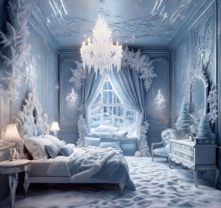 Соседка лунной комнаты, напротив, очень даже рада жильцам из рядов хладнокровных, не чувствительных к температуре, царящей в этой комнате. По праву зовётся снежной. Здесь достаточно прохладно. Пол засыпан нетающим снегом, стены, потолок и часть мебели покрыты коркой льда, на окнах застыл причудливый морозный узор, не особо позволяющий разглядеть окружающий мир.